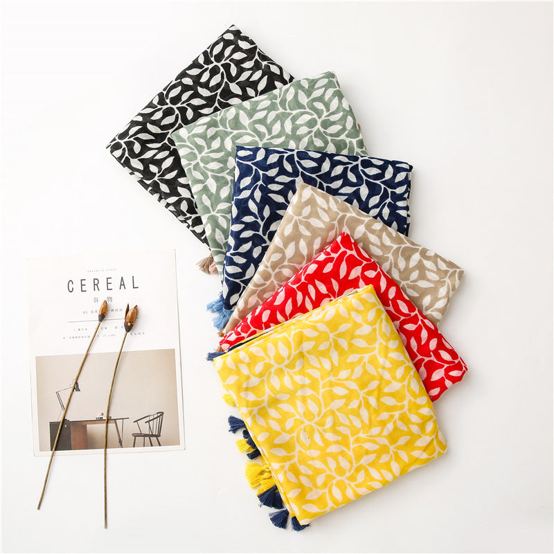 Women's Grape Leaves Sunscreen Cotton And Linen Tassel Shawl Scarf